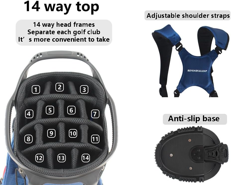 14-WAY DIVIDER: 14 individual slots to organize and protect your golf clubs,preventing them from tangling and getting damaged during play or transportation. multiple handle design makes it more convenient to move the golf bag