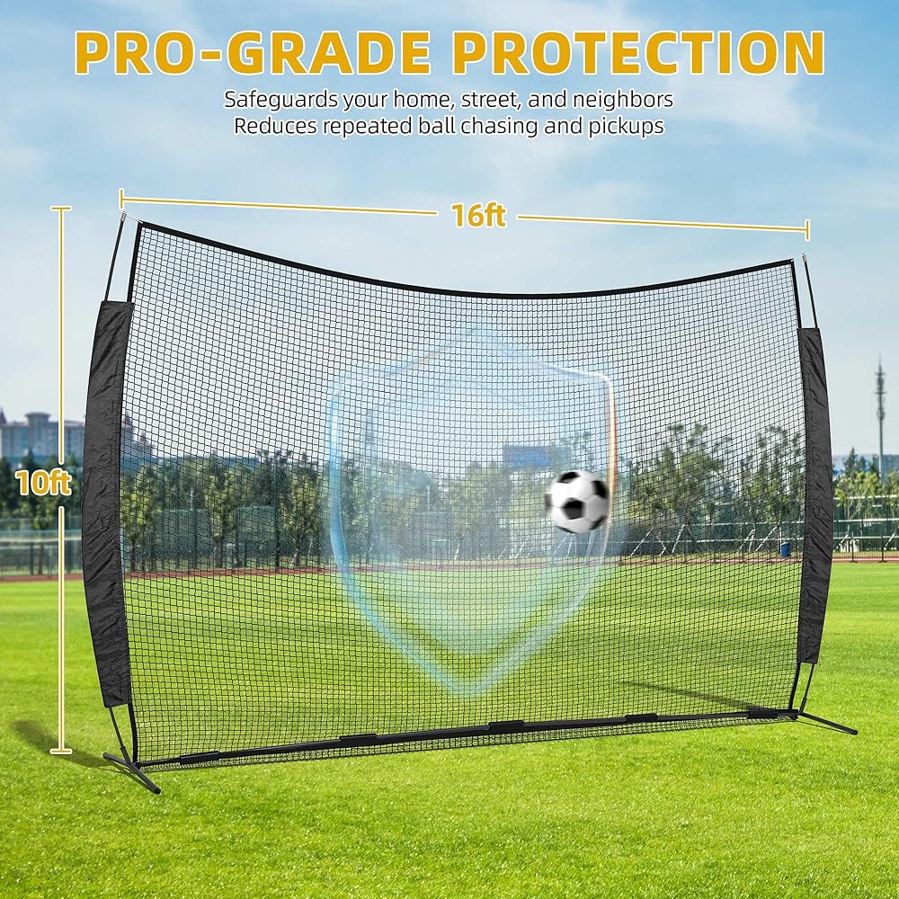 Sturdy & Durable: Sports Barrier Net, super strong 7-ply 1.75-inch knotless netting with high density polyester netting,high-toughness fiberglass rods gives the net a strong buffering ability and a quick recovery,with ground stakes for added stability. so,our nets can withstand even the hardest hits,great for indoor outdoor practice.