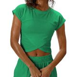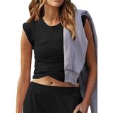 Featuring short sleeves, a cropped and slim-fit design, this is a simple and basic style ideal for daily summer wear. The unique cap sleeves provide moderate coverage for the shoulders and upper arms while maintaining a sleek, streamlined silhouette.