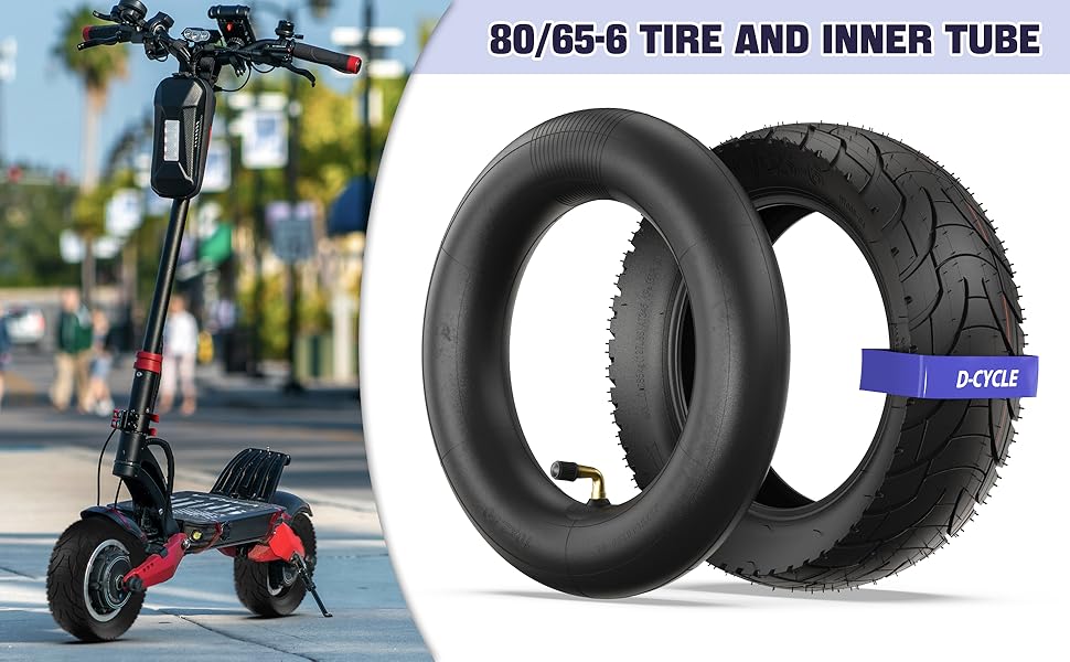 【Package Include】 1x 80/65-6 Tire, 1x Inner Tube with dust cap (the valve size of inner tube: 90°), 1x Tire Lever, 1 x Valve Extension, easy to Inflate with a valve extension adaptor.