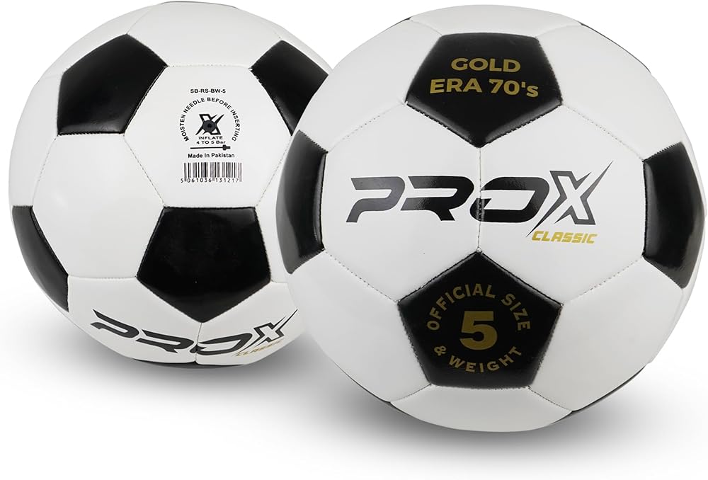 Timeless Classic Design, showcasing a traditional black and white hexagon panel layout, this PRO X soccer ball size 4 & 5 delivers a vintage 70's vibe with a modern twist. Perfect for practices, matches, or casual play, it's a stylish and functional choice for youth and adult players alike.