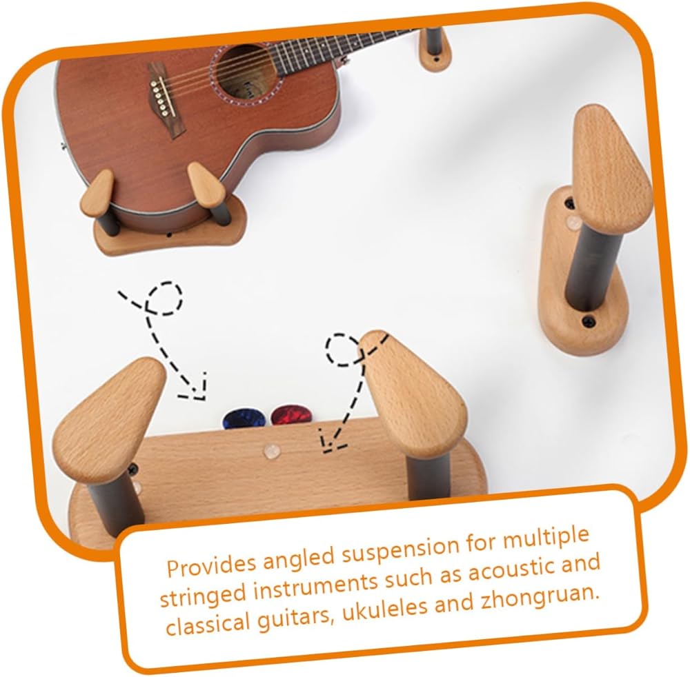 - Provides angled suspension for multiple stringed instruments such as acoustic and classical guitars, ukuleles and zhongruan wall mount guitar hangers.