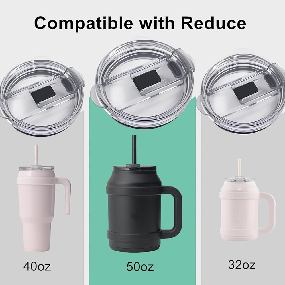 【Perfect Compatible with Reduce Tumblers】Our replacement lids are expertly crafted to be compatible with Reduce 32, 40, and 50 oz tumblers. Whether you're looking for a compatible with Reduce tumbler lid replacement or need replacement lids for Reduce 50 oz tumblers, our lids ensure a snug fit and reliable performance, making them ideal for all your hydration needs.