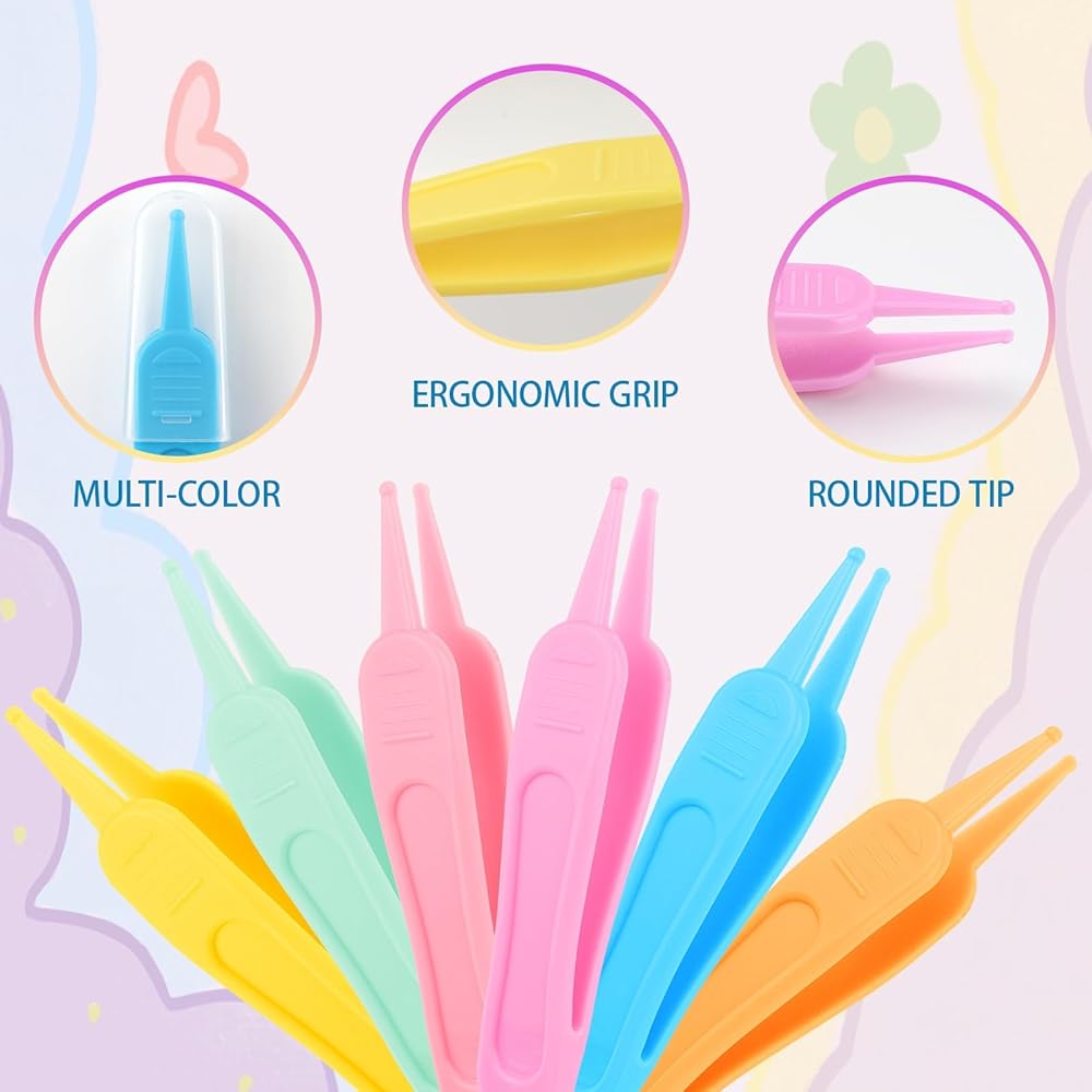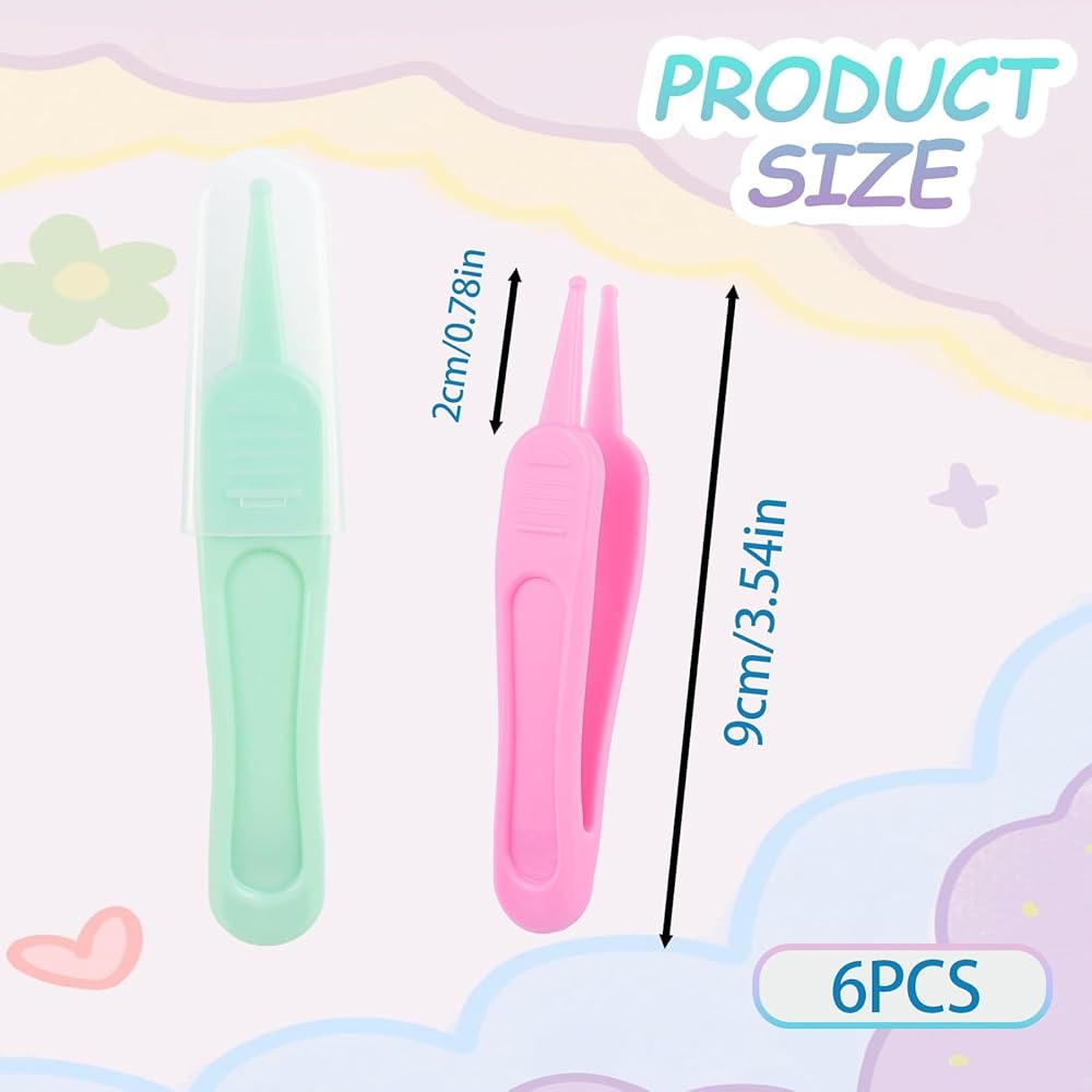 6-Piece Multi-Color Set: This package includes 6 nose cleaning tweezers in light green, dark blue, light yellow, orange, light purple, and pink. The varied colors offer easy distinction for different uses, providing a practical supply for daily baby care needs.