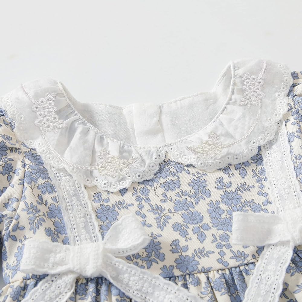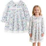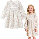 - 🌸Design-Ruffles floral collar, long sleeve, smocking detail in chest, Flower and fruit print,best dress-up for autumn&spring