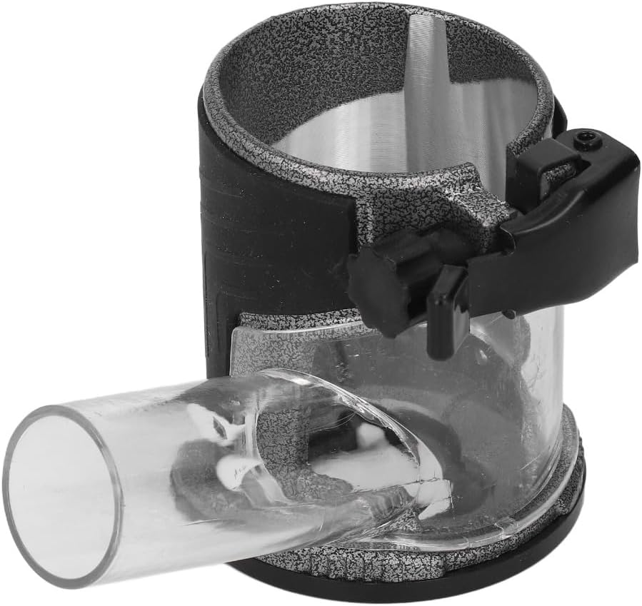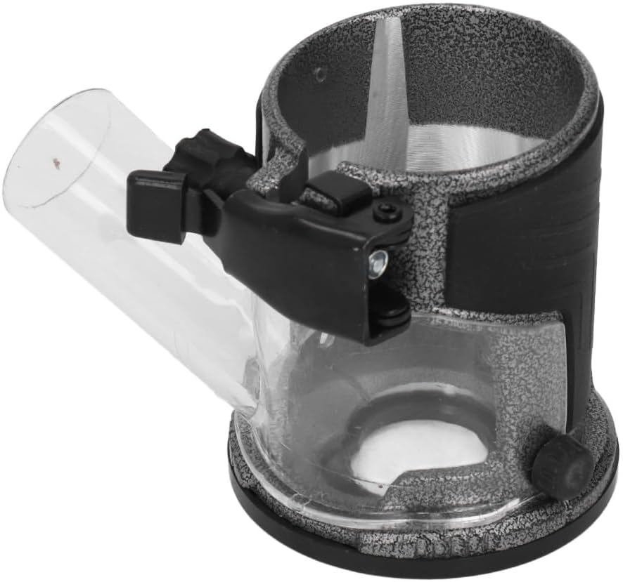 The adjustable aluminum alloy trimming machine base features a built-in collection system that connects to standard vacuum cleaners for efficient debris collection during woodworking. Its transparent cover allows real-time monitoring of wood chips accumulation levels while maintaining visibility during routing tasks.