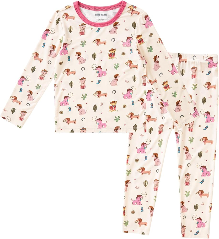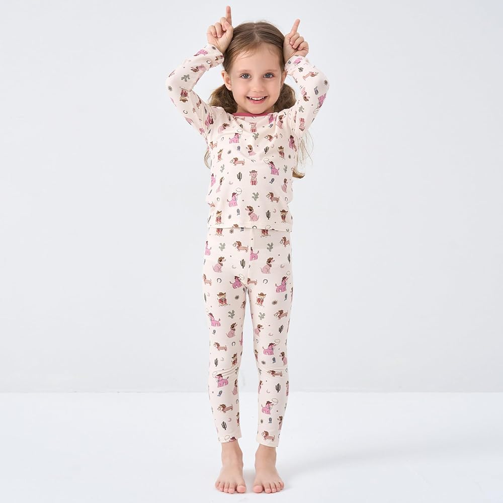 COMFORTABLE PREMIUM PAJAMAS - Our pajamas set is made with 95% viscose from bamboo and 5% spandex. The fabric is ultra-soft, smooth and 4-way stretch, adorable patterns designs, absorbs sweat quickly, drives dampness away, provides baby ultimate comfort, perfect for kid's tender skin