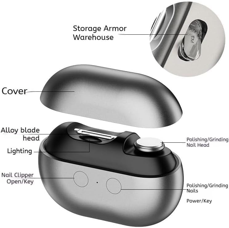 Fanyil Electric Nail Clipper, Electric Toenail Clippers for Seniors&Women, Automanitc 3-in-1Nail Clippers Multi Function with LED Light & Storage Box.Black.