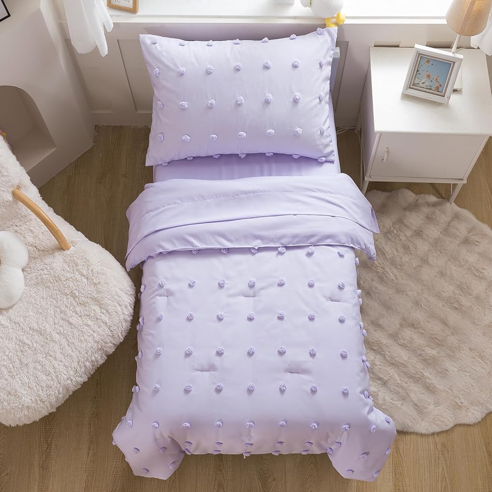 Soft Material: Our toddler bedding sets crafted from premium brushed microfiber with a high-grade polyester inner filling, suitable for all seasons, and provide a comfortable sleeping environment for kids.