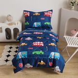 Toddler Bed Set Include: 1 comforter (42x58inch), 1 pillowcase (20" x 30"), 1 flat sheet (45" x 60") and 1 fitted sheet (28" x 52" ). Our 4-piece toddler bedding set is specifically designed to fit standard American toddler mattress sizes.