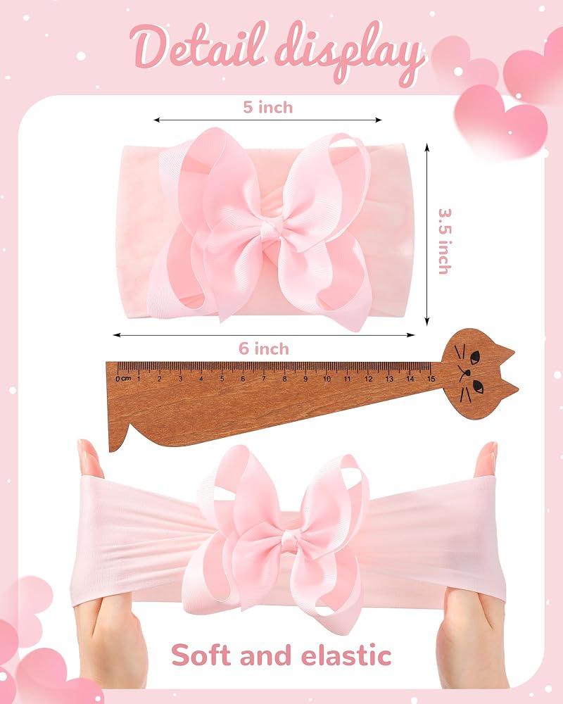 Quality Material: Our baby headband material is made of soft nylon and the bow is made of High-quality textured double-sided bilateral gold weft webbing bows. Unlike other regular nylon hairbands, each large ribbon bow of the baby girl headband is handmade. The stretchy nylon headband fits most babies from newborn to toddler.