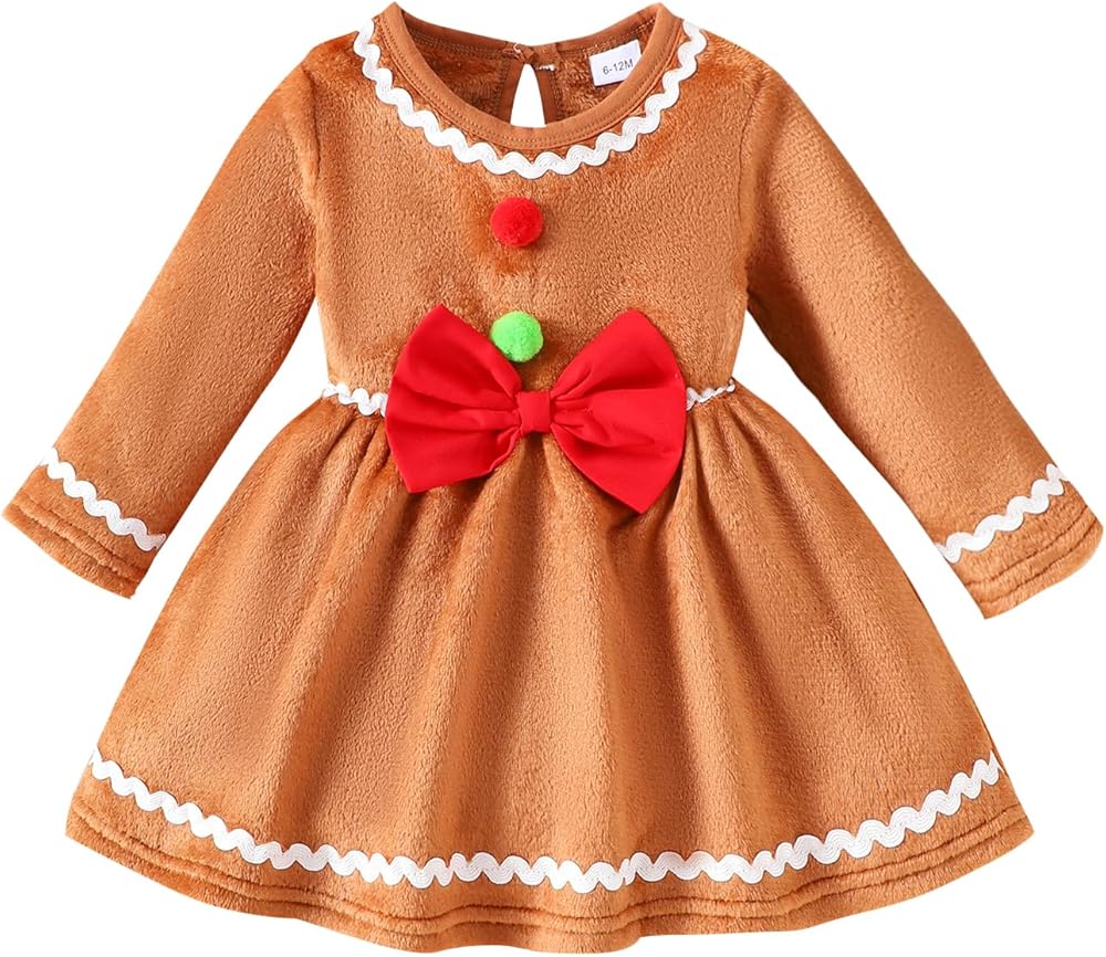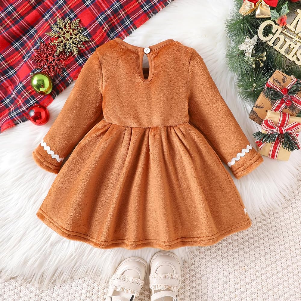 Christmas toddler girl dress, long sleeve, gingerbread man velvet dress, best gifts for your cute baby girl