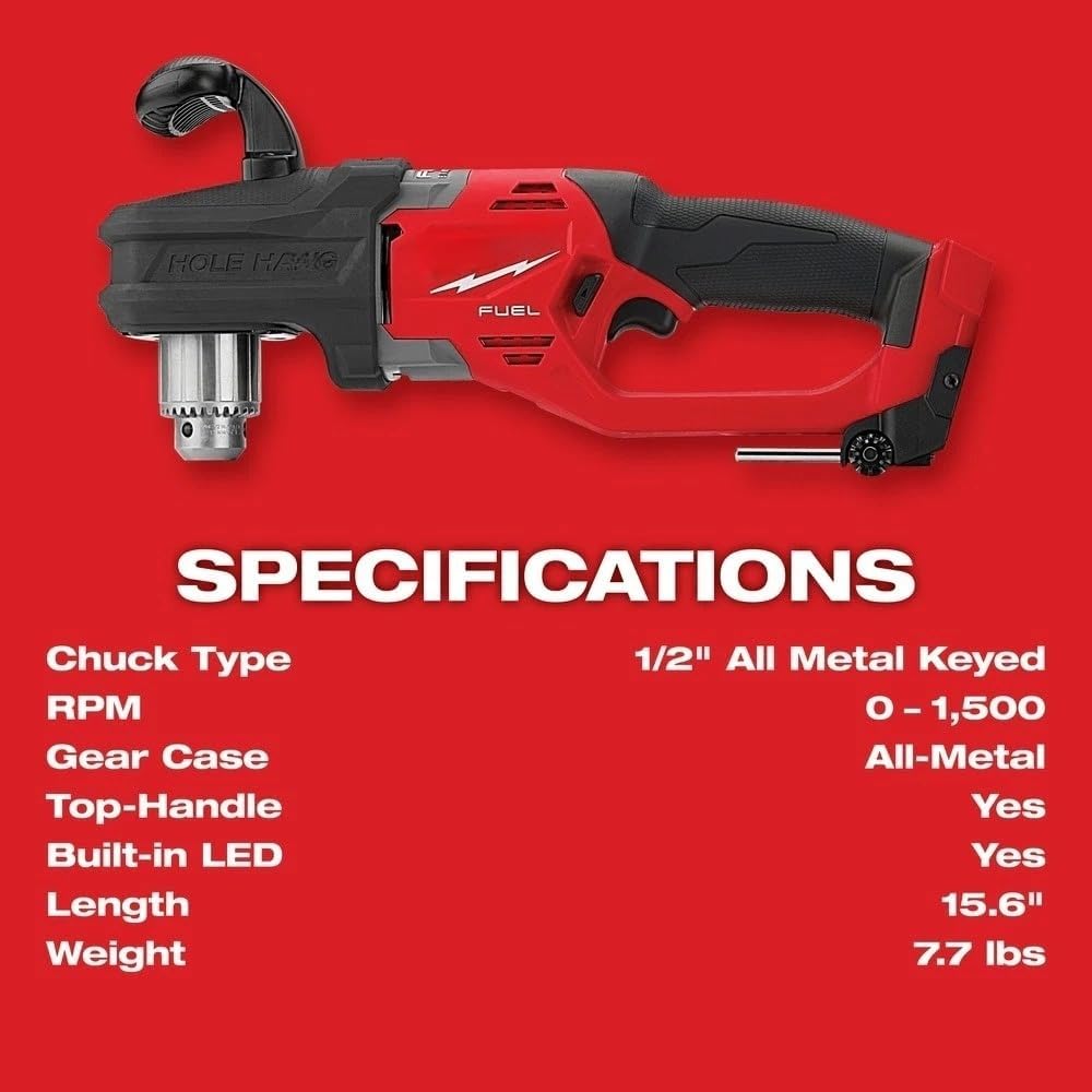 M18 FUEL 1/2" Right Angle Drill delivers the next generation of right-angle drill performance providing electricians and professional tradesmen with the fastest rough-ins and lightest right-angle drill. We've redesigned it from the ground-up with an upgraded Brushless Motor and enhanced Intelligence electronics, allowing the next generation of the M18 FUEL to deliver increased power and speed. When paired with the M18 6.0AH Batteries (sold separately), the new M18 FUEL drills up to 220 7/8" holes on a single charge to increase productivity and eliminate downtime.