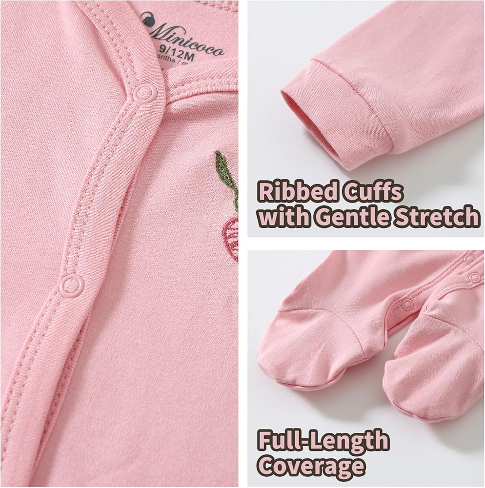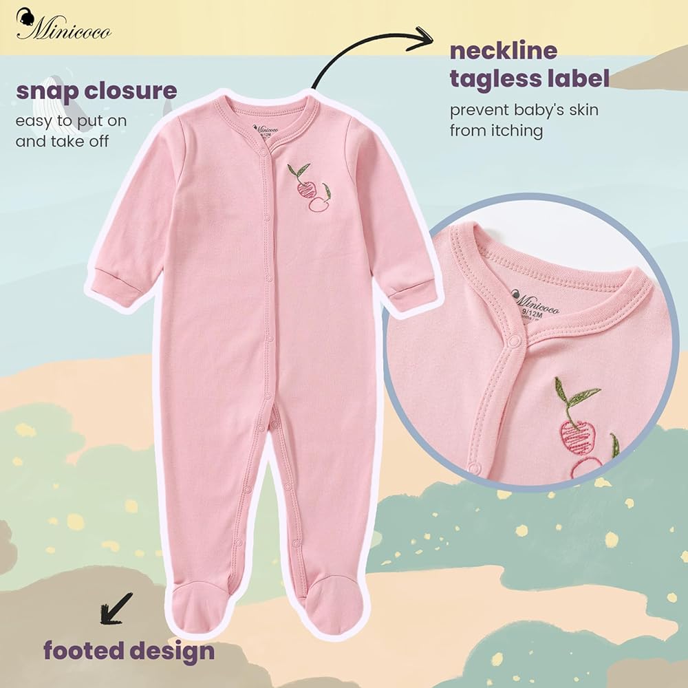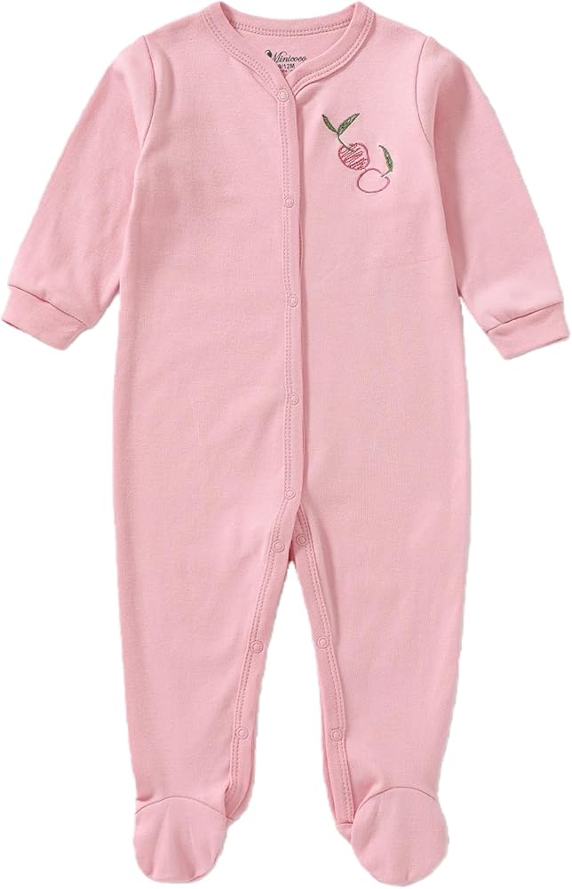 Minicoco Baby Girl Footies Romper: Comfort Meets Style for Your Little Princess Wrap your baby girl in cloud-like softness with the Minicoco 100% Cotton Footed Romper! Designed for newborns up to 24 months, this adorable outfit combines practicality and charm for every precious moment.