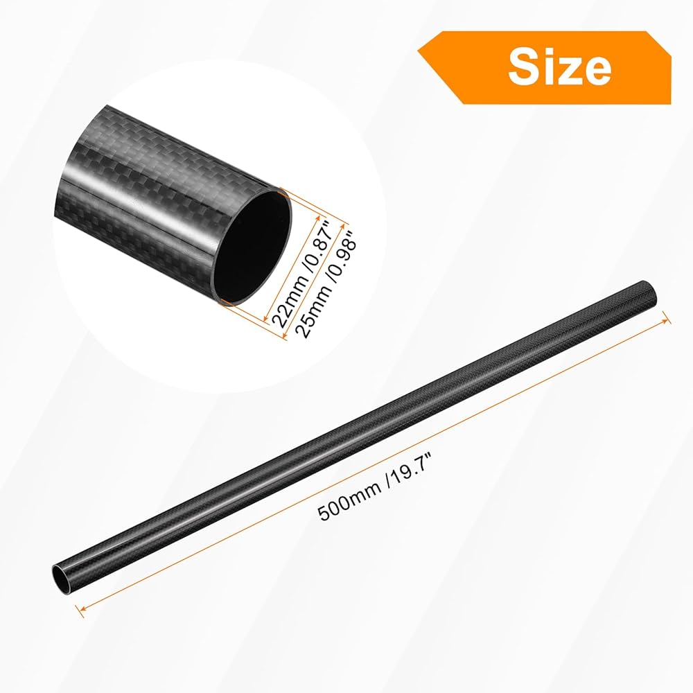 The carbon fiber tube, we provide here, is in size of: Length: 500mm / 19.7 inch; Outer Diameter: 25mm / 0.98 inch; Inner Diameter: 22mm / 0.87 inch