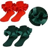 Christmas Gift Socks for Little Girls: cute girls big lace ruffle socks can be sent as christmas, new year,birthday, valentine's day, easter, back to school gift... which will bring fashion,elegance and freshness to your little girls'wardrobe.red and green ruffle christmas socks are ideal for celebrating the holiday season in style