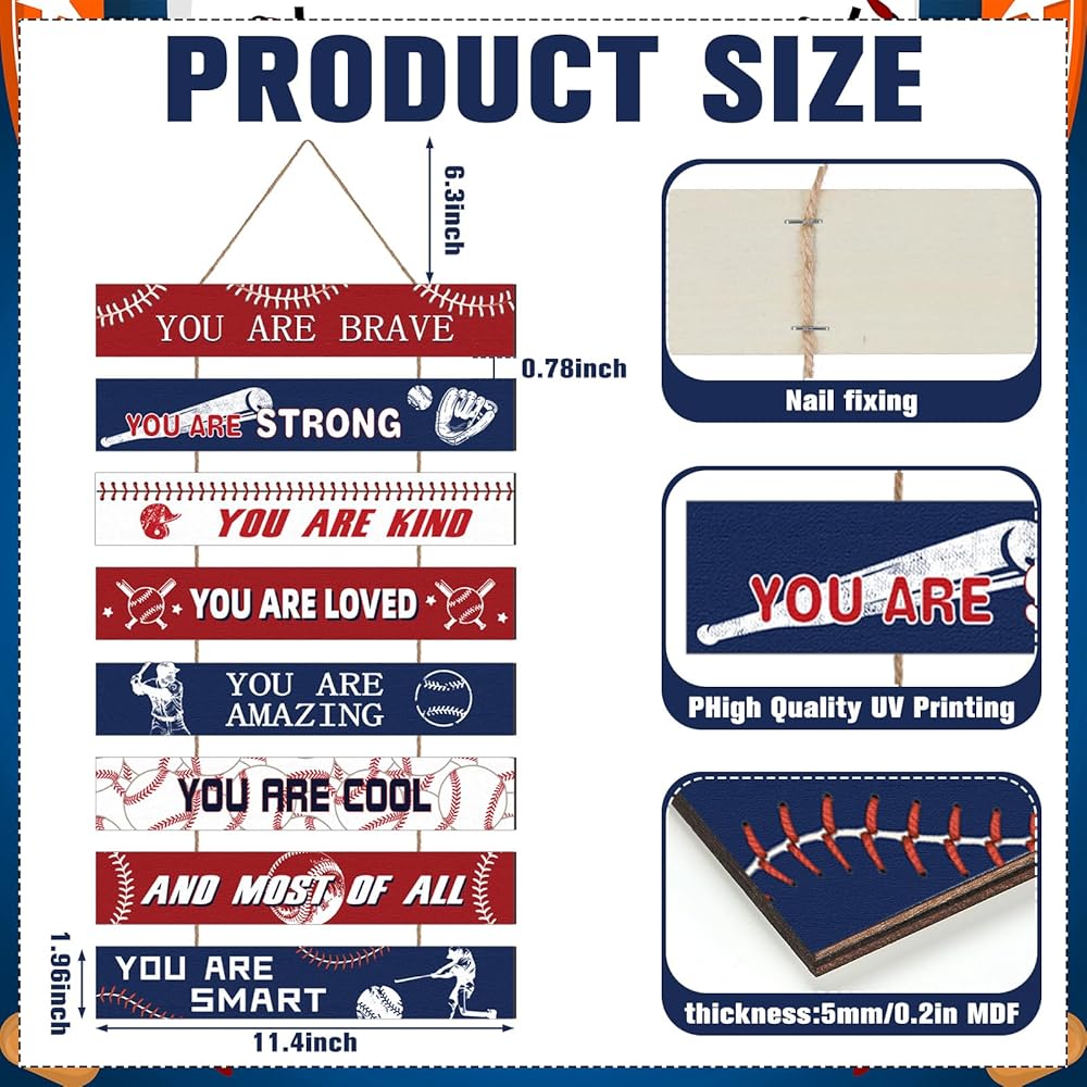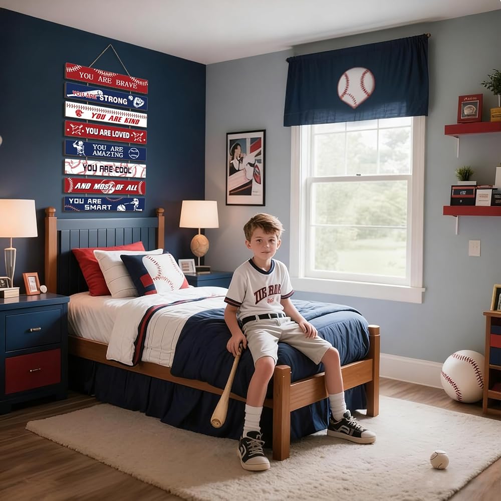 This baseball decor for boys room suits bedrooms, dorms, classrooms, offices, and gyms. Its universal messages and sports theme appeal to different ages, adding positivity to various settings.