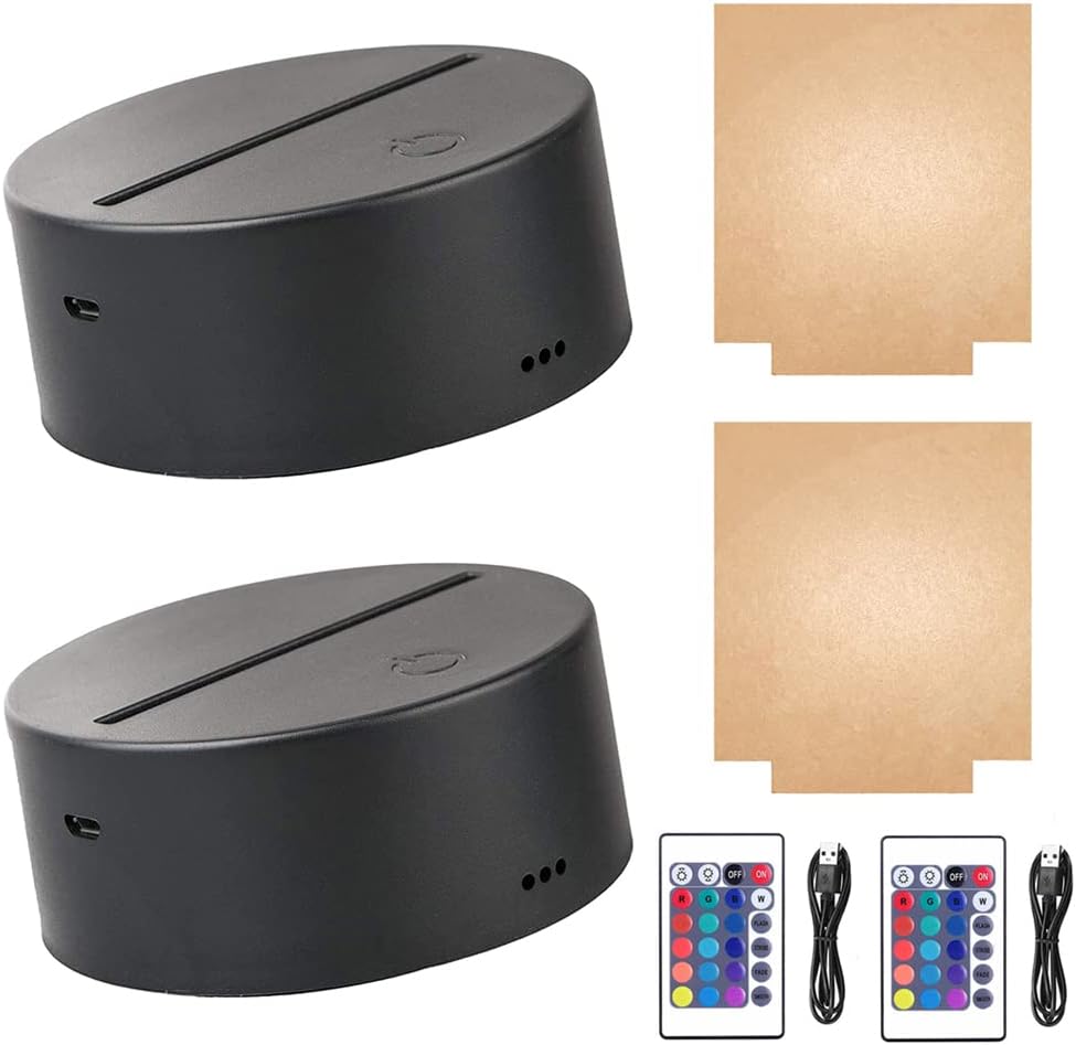 2-Set 3D Night LED Light Lamp Base with Square Acrylic Sheet, Large Size Base Includes Remote Control + USB Cable, 16 Colors Decoration Maison Decorative Lights for Bedroom Child Room (Black)