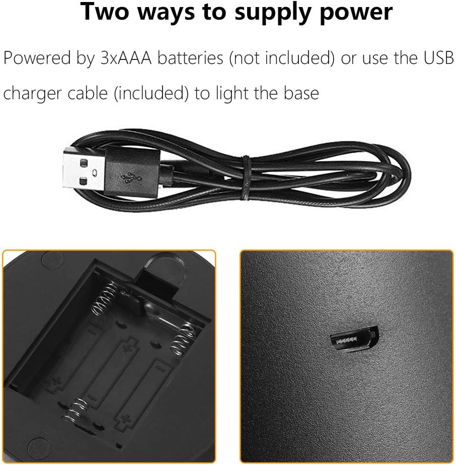 The LED base operated by 3 x AAA batteries or USB Charger Cable, which can be replaced easily