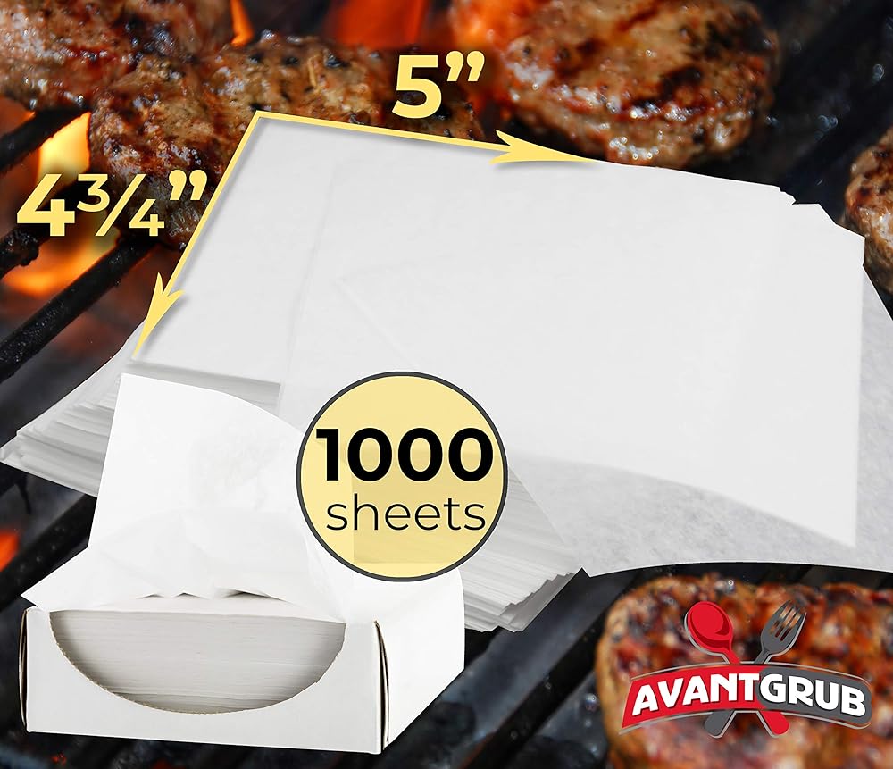 Serve The Perfect BurgerMake and freeze large patties in advance of cookouts and barbeques knowing that they'll retain their texture, flavor, and moisture. Our wax-coated sheets help reduce juices and greases from leaking through so burgers are juicy and full of flavor. Great For Churches, Schools, and Family CookoutsOur restaurant-quality 4.75 in x 5 in patty sheets are a perfect addition to any large event. Make the burgers beforehand and freeze them, then simply thaw the burgers the day of and cook them. You'll have more time to spend with guests and feel less pressure to get everything preparedCan I Use This Paper For Foods That Aren't Meat?100% yes. Our customers don't only use this for interleaving paper between burgers. You'll constantly be finding new ways to use the neatly boxed wax paper. You can wrap sandwiches in it, use it for making cookie dough, line food baskets, and a variety of other ways. Even better, it can be safely used in the microwave.Can I Use This When I Freeze Hamburger Patties and Other Items?Absolutely! The slightly rectangular paper sheets are the ideal size for burgers. For best results, use two sheets between patties so you can easily separate frozen patties with a butter knifeWhat's in the box?You will receive 1000- 4.75 inch x 5 inch food-grade wax paper sheets.! .