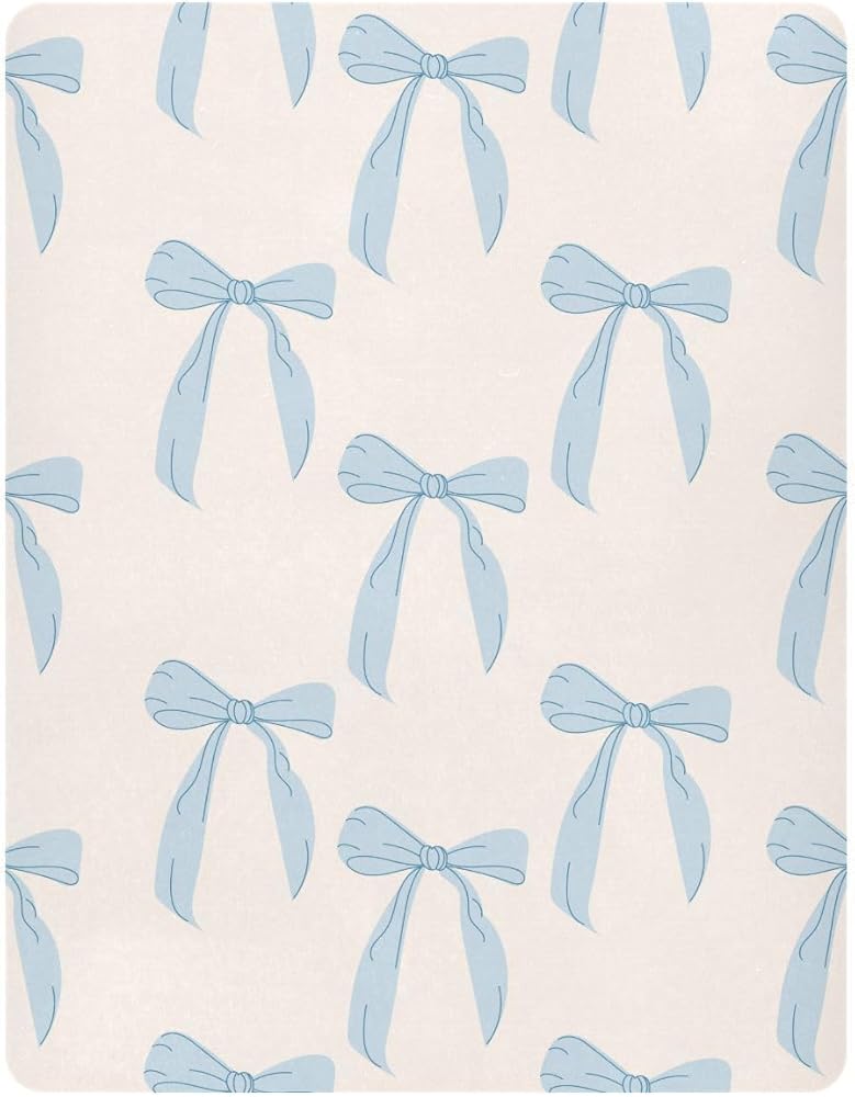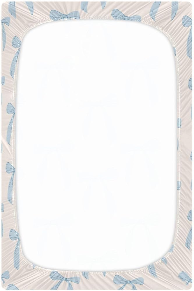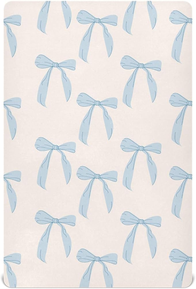 Coquette Bows Cute Blue Fitted Crib Sheets Stretchy Portable Playard Sheets for Baby Toddler, Breathable Soft Mini Crib Mattress 52 x 28 in for Boys and Girls