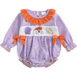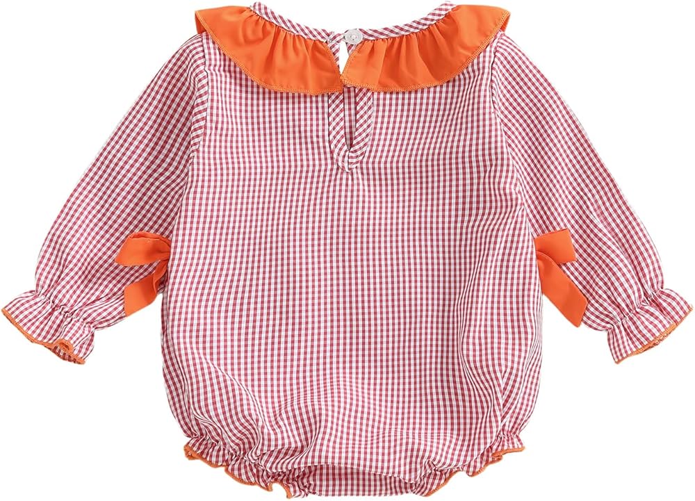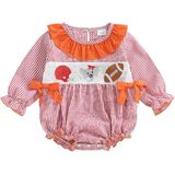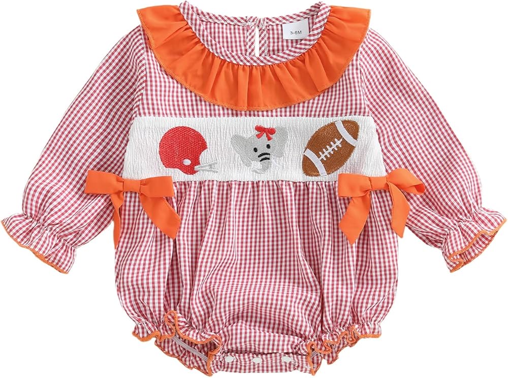 • New Design: The baby girl football romper, baby girl long sleeve romper, baby crewneck romper, baby girl plaid romper, baby girl fall romper, baby girl smocked romper, plaid embroidery and rugby embroidery, cute baby girl clothes, delicate bow decor makes your baby more fashionable and adorable