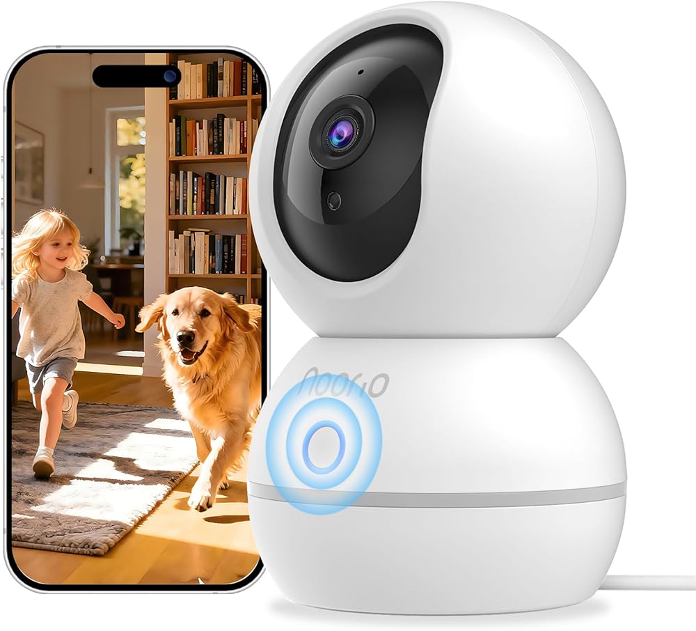 2K Crystal-Clear Image & 360° View - Experience sharp details with 2K resolution, ensuring you see every moment clearly. The 360° PTZ design provides full-room coverage, making noorio 2.4G WiFi indoor camera perfect for living rooms, bedrooms, or nurseries. (Not Support 5G WiFi & download the NEWEST Noorio App)