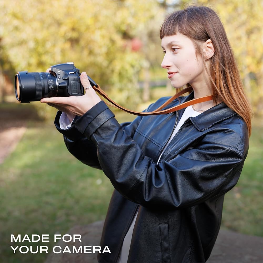 • Durable & Comfortable: Built with reinforced stitching and 18-braided connectors, this dslr camera strap ensures dependable strength while staying lightweight. The smooth leather provides all-day comfort for photographers on the move.