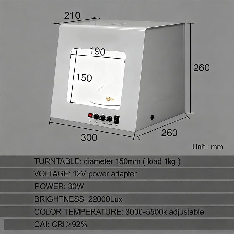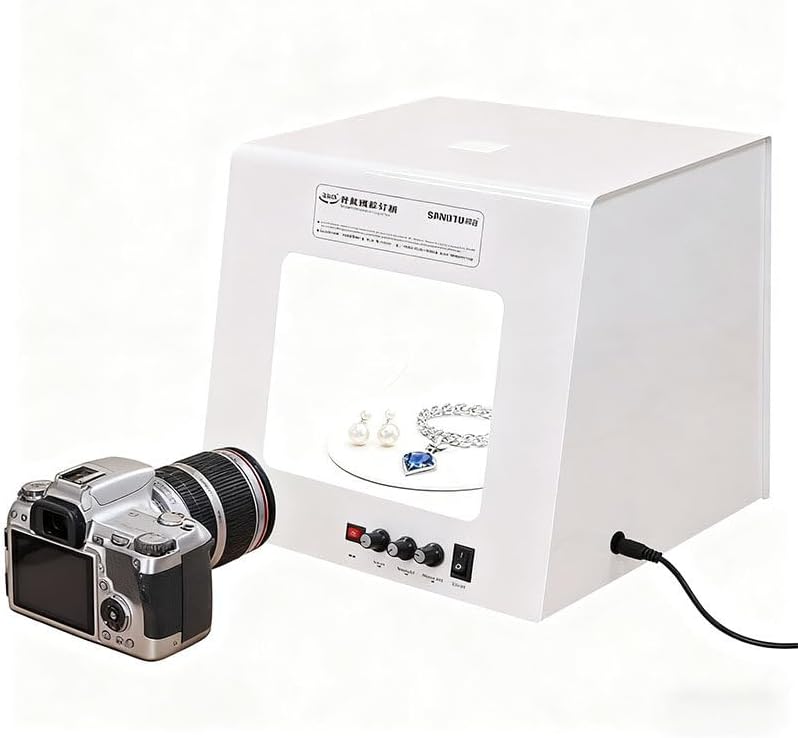 Jewelry Photography Box Kit - This versatile Light Box features adjustable color temperature and dimmable lighting for perfect shots. With a rotating Turntable and hanging Rack, it accommodates a variety of Jewelry, Watches, and Accessories. Customize brightness for optimal results, making it ideal for both professional and amateur photographers. Capture stunning images effortlessly!