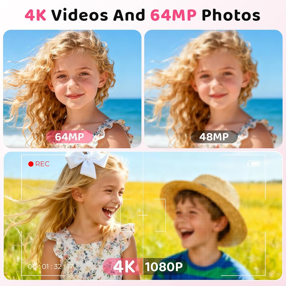 🎥 【4K Video Recording & Webcam Function】Shoot smooth 4K/30fps videos or use as a webcam for vlogging and online classes. Built-in microphone supports audio recording—perfect for young content creators