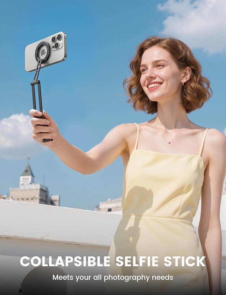 Compact & Portable: This selfie stick mount is crafted from durable aluminum alloy, offering high strength in a lightweight form. Its refined finish resists chipping for long-lasting use. Made for life on the move, its slim form and powerful magnetic ring let you shooting and stow with ease. Just slide it into your pocket—your perfect shot is always within reach.
