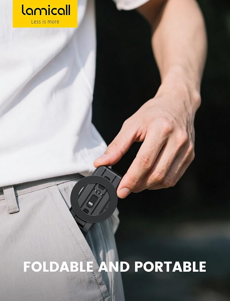 Wide Compatibility: The magnetic phone tripod works with iPhone 17/16/15/14/13/12 Pro Max/17 Air series and other smartphones supporting wireless charging. If your phone or case does not have Mag Safe function, you can stick the metal ring (included in the package) on the back of the phone or case to achieve strong magnetism.