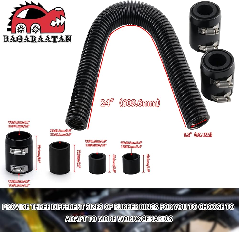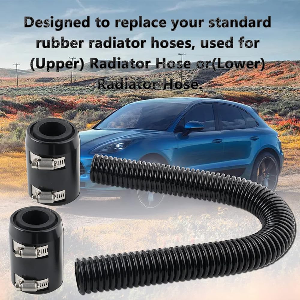 Universal 24" Flexible Radiator Hose Stainless Steel Universal Water Hoses Adapter Coolant Radiator Hose Kit Could be Used with 1-1/4", 1-1/2", 1-3/4" or 1-5/8" Radiator Necks (Black)