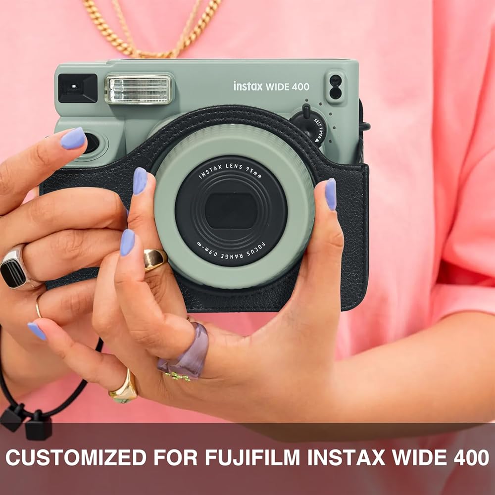Professional Customization: A Beautiful Camera Bag Customized for the Fujifilm Instax Wide Angle 400 Instant Camera, Comfort, Perfect Fit, Better Protection, Exquisite Workmanship and Color Fully Reflect Your Unique Taste, No Camera All Round Protection: Made of Premium PU Leather and Soft Interior, The Wide 400 Camera Case Effectively Protects Your Camera From Bumps, Scratches and Dust, Adjustable Straps Give You the Flexibility to Adjust to the Best Wearing Length Thoughtful Design: With a Detachable Front Cover, The Wide 400 Camera Can Be Taken Without Having to be Removed, Perfect fit With Wide 400 Camera, Better use Experience Timely Capture and Record the Beautiful Moments in Life Unique Point: The Bottom of This Wide 400 Camera Bag Has a Small Hole Can be Directly Mounted on the Tripod, The Perfect Solution to The Need to Find Someone to Take Pictures of the Trouble Wide Picture Frame: These Magnetic Picture Frame are Perfect for Instax Wide Photos Taken By All Camera, You Can Also Crop Photos of Other Sizes to Fit This for Polaroid Picture Frames, Size Picture Frames:4.5*3.9 Inch