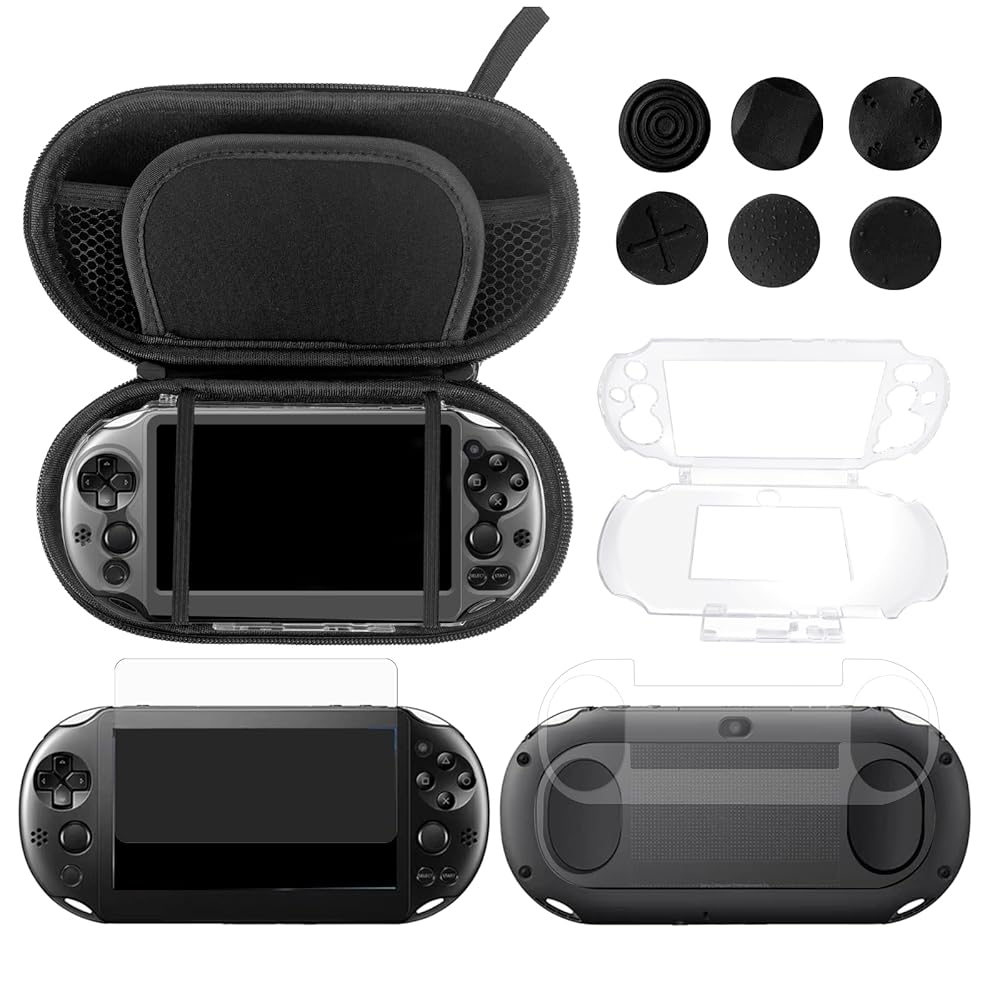 【All-in-One Protection & Storage】Ours 10-in-1 case kit for PSVita 2000 provides a complete protection and storage solution for your PS Vita 2000 Slim, including a durable carrying case, PC protective case, front and back screen protectors, and 6Pcs thumb grip caps—everything you need in one package.