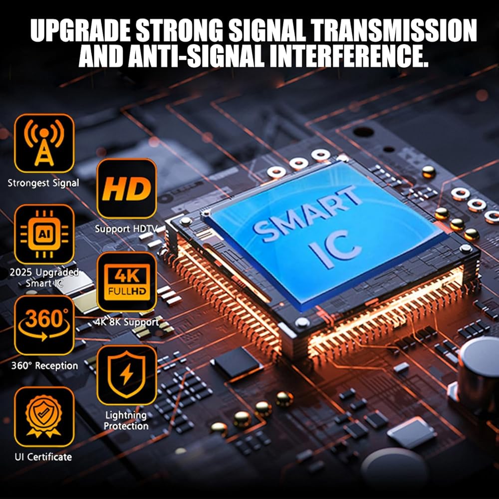 360 ° reception of fully free high-definition channels: Don't hesitate, choose the latest advanced TV antenna from 2025. You will bid farewell to paying TV fees for life! With this digital TV antenna, you can enjoy hundreds of clear full HD free channels such as ABC、CBS、NBC、PBS、Fox、Univision and more! Start easily accessing all news, sports, sitcoms, and children's programs from home. Antenna - the best advanced tool for receiving channels without monthly bills for life,be sure to check which channels are available in your area!