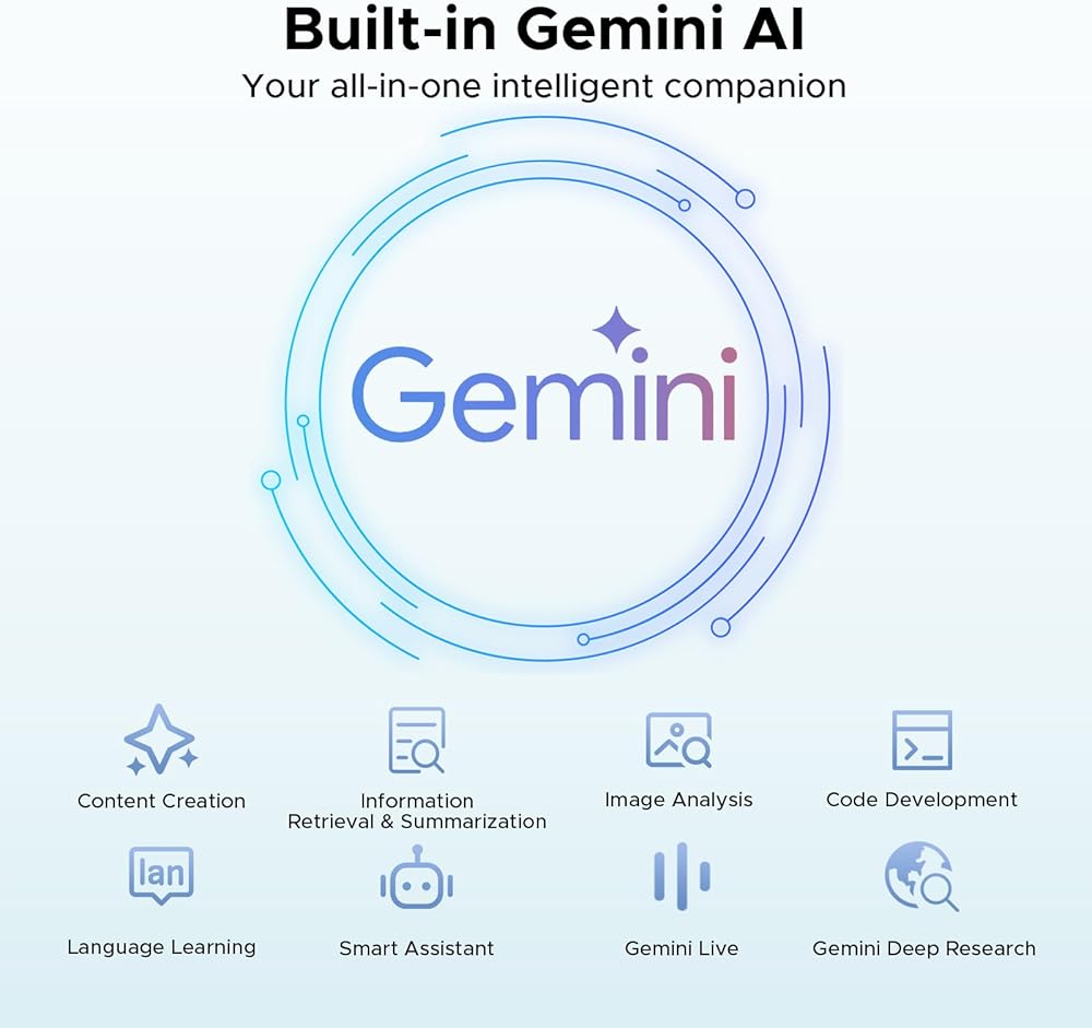 【Newest Android 15 + Gemini AI – Redefining Tablet Intelligence】The DOOGEE Tab E3 android tablet combines the latest Android 15 system with Gemini AI to deliver real-time translation, smart text suggestions, and AI-enhanced multitasking. Whether you're in a virtual meeting or writing a report, the AI assistance makes tasks faster and more efficient. Powered by the 6nm Helio G100 octa-core chip, this android 15 tablet provides a 40% faster app-switching experience compared to previous Android 14 models. It's a true productivity booster for work, school, or entertainment on the go.