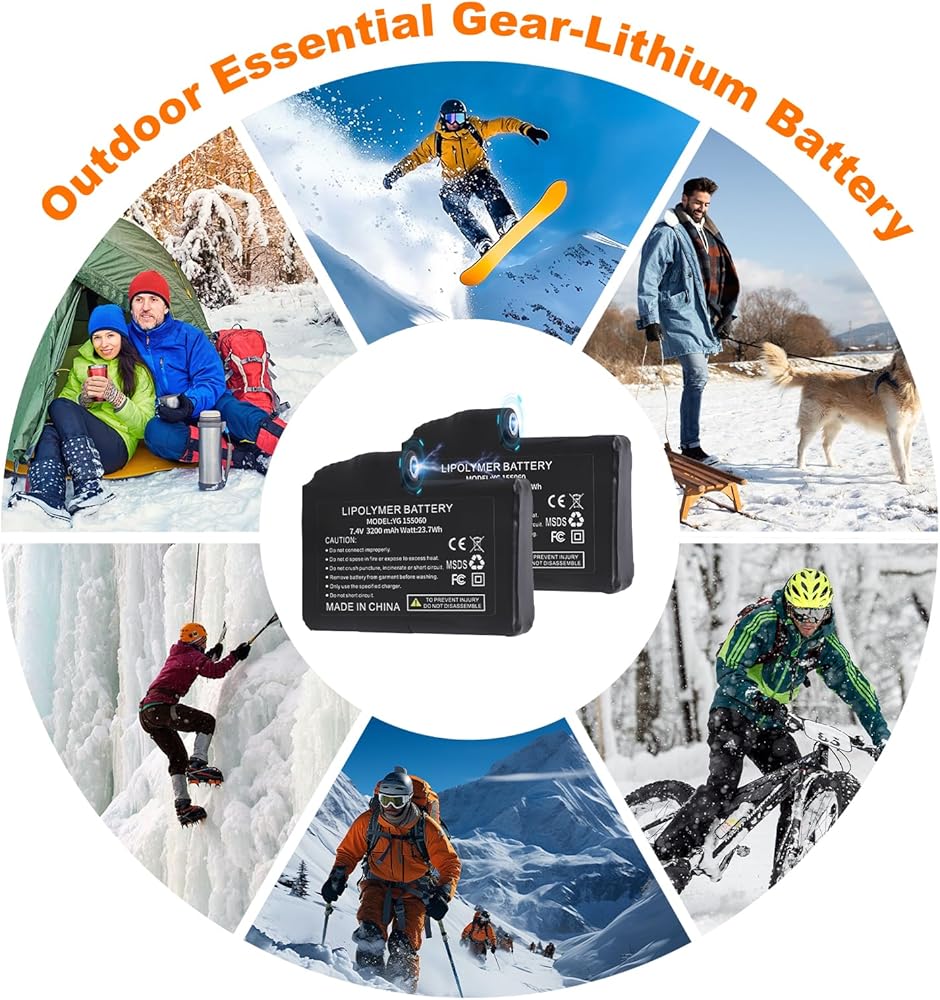 2-Pack High-Capacity Batteries for Heated Gear: Includes 2pcs of 2200mAh Li-Polymer batteries, compatible with heated gloves, socks, vests, hats & more. It's runs for (2.5-6 hrs) depending on heating level (High-middle-low), keeping you warm in freezing conditions.