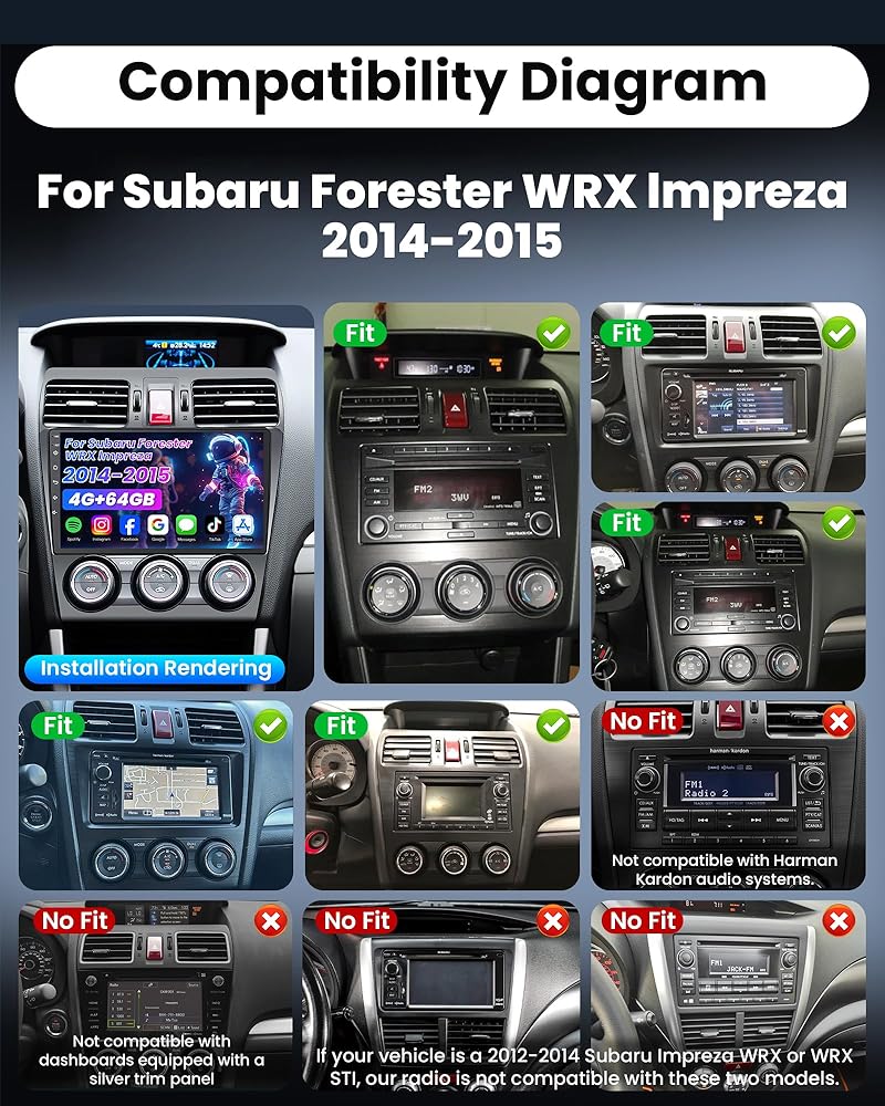 【GPS Navigation & 5G WIFI】The 2015 Subaru Forester radio GPS navigation head unit built-in GPS module and external GPS antenna for online or offline map navigation. Offline map data preloaded, ready to use after installation. this car radio also supports WIFI Hot-spot connection, you can easily access and download online navigation APPs, Instagram, Facebook, TikTok, etc on Play store.