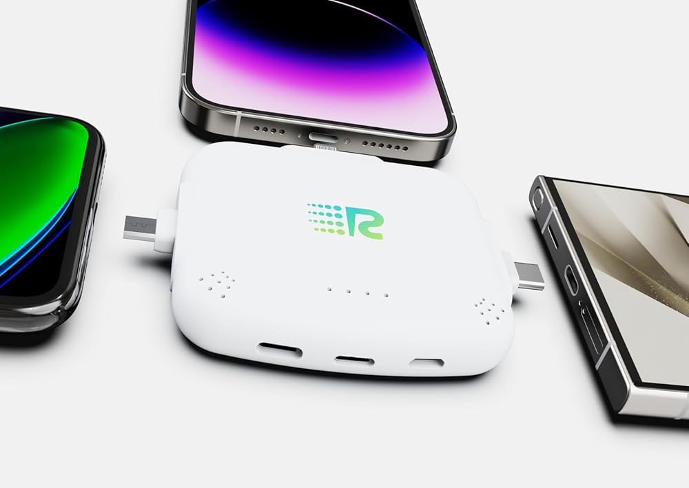 Rush Charge Universe 4 Pack 3 in 1 Portable Charger – 3300 Mah 2.4A High-Speed Fast Charging Compatible with iPhone and Android Lightning, Type C, Micro-USB (Black/White/Purple/Blue)