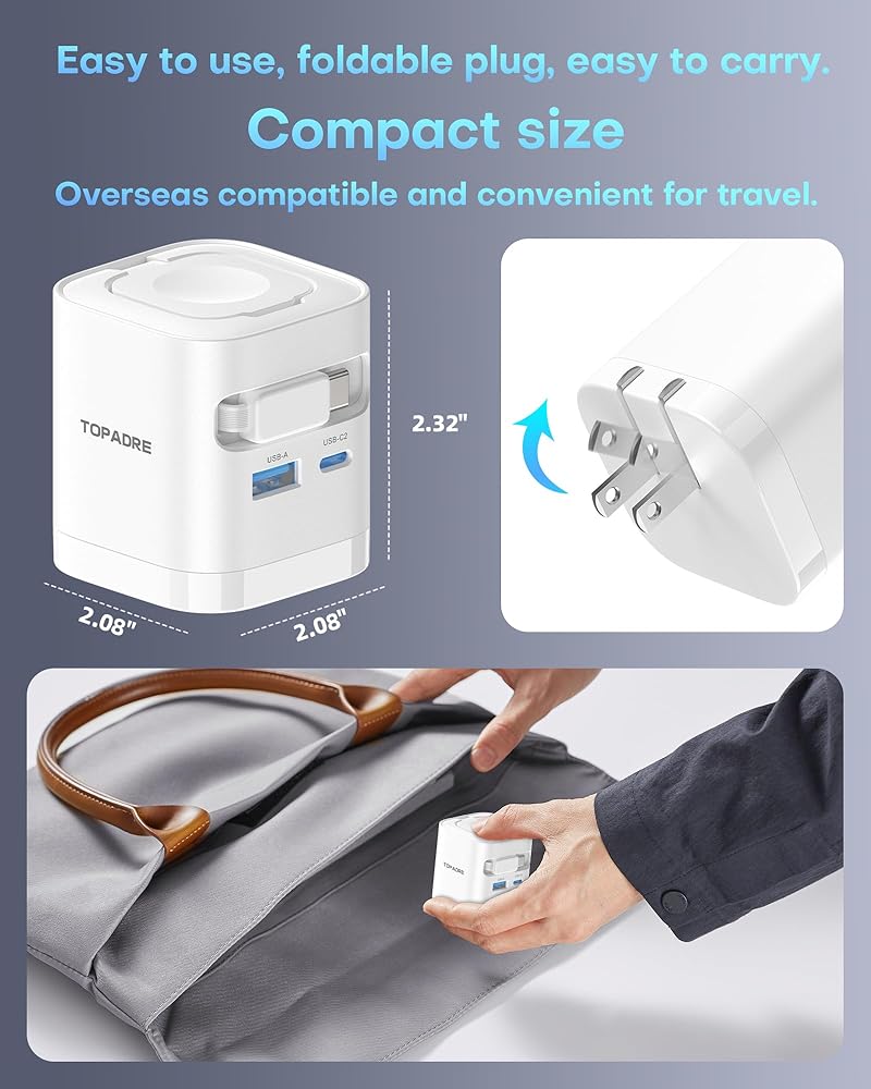 【65W Charger for Apple Watch Fast Charging】Experience seamless power delivery with the TOPADRE 65W USB C charger block. It includes a 70cm retractable USB C cable for clutter-free charging and a magnetic for Apple Watch charger fast charging module that supports multiple angles for bedside, desktop, or wall outlets. Charge your iPhone 17 up to 55% in just 30 minutes and your watch in minutes—ideal for busy professionals and frequent travelers.