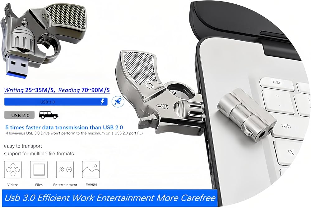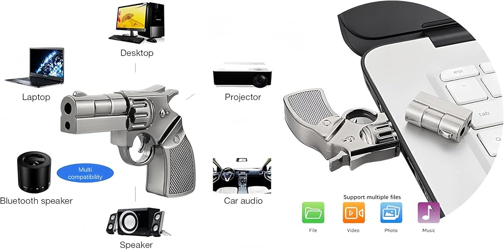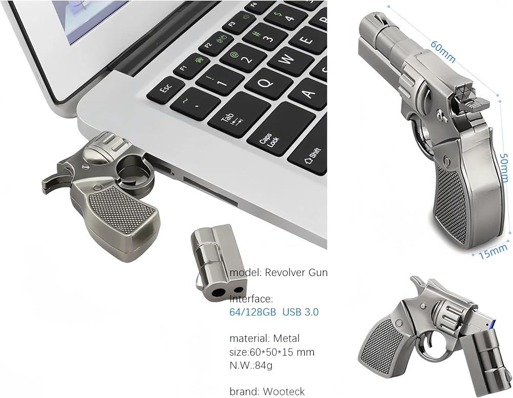 Novelty Pistol Revolver Shape and easy to use.Just plug and play into a USB port