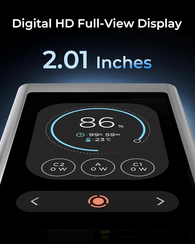 High Definition TFT Display: Stay informed with a 2.01 inches high definition TFT display that shows real-time data on remaining battery capacity, power input, and power output—giving you full visibility and control over your power bank. Support high temperature popup warning, making it safer to use