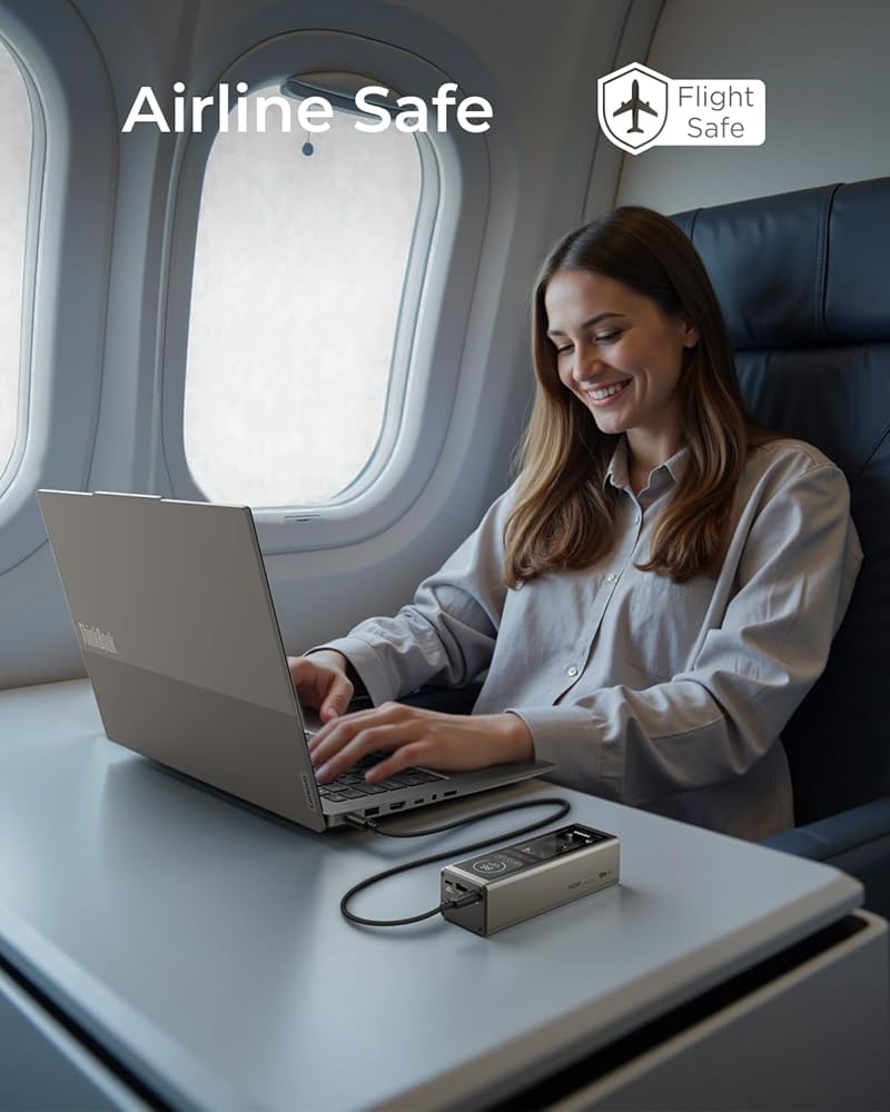Charge 3 Devices at Once: With 2 USB-C ports and 1 USB-A port,the Lenovo power bank delivers a total output of 135W, enabling fast charging of up to three devices simultaneously with efficient power distribution. It is recommended to use USB-C1 for charging laptop separately, which can output up to 140W Max.
