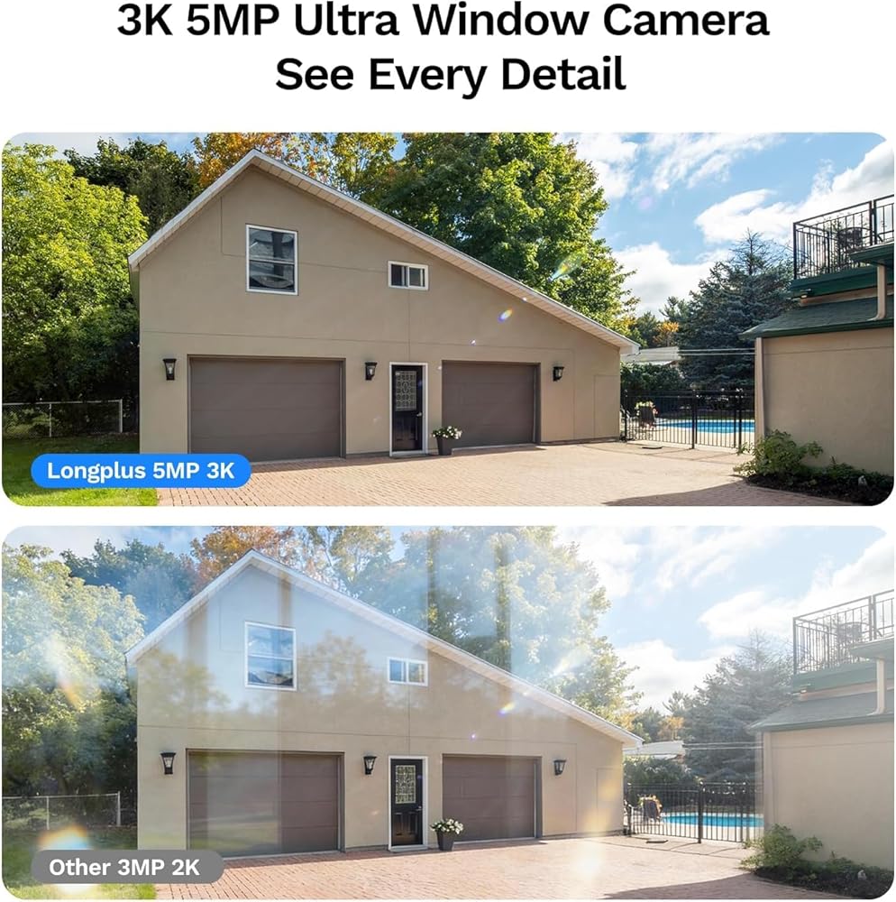 LongPlus 3K 5MP Window Camera with Night Vision, 2.4ghz & 5ghz WiFi Safeview Indoor Window Cameras for Home Security, AI Smart Detection, 2-Way Audio, Easy & Quick Install, 24/7 Recording