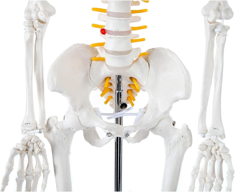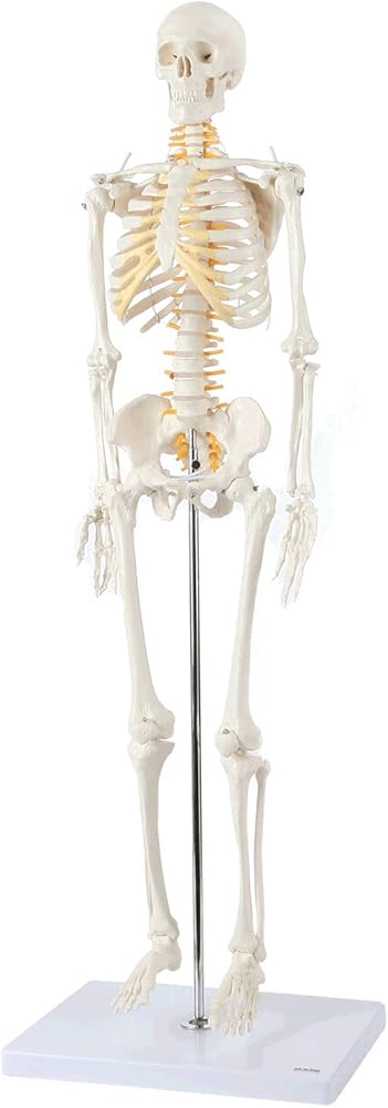MINI HUMAN SKELETON: The Axis Scientific miniature human skeleton model is 31" tall, demonstrates articulation in the shoulder, elbow, wrist hip knee and ankle joints, and includes major anatomical landmarks for study and educational discussion of the anatomically correct skeleton.