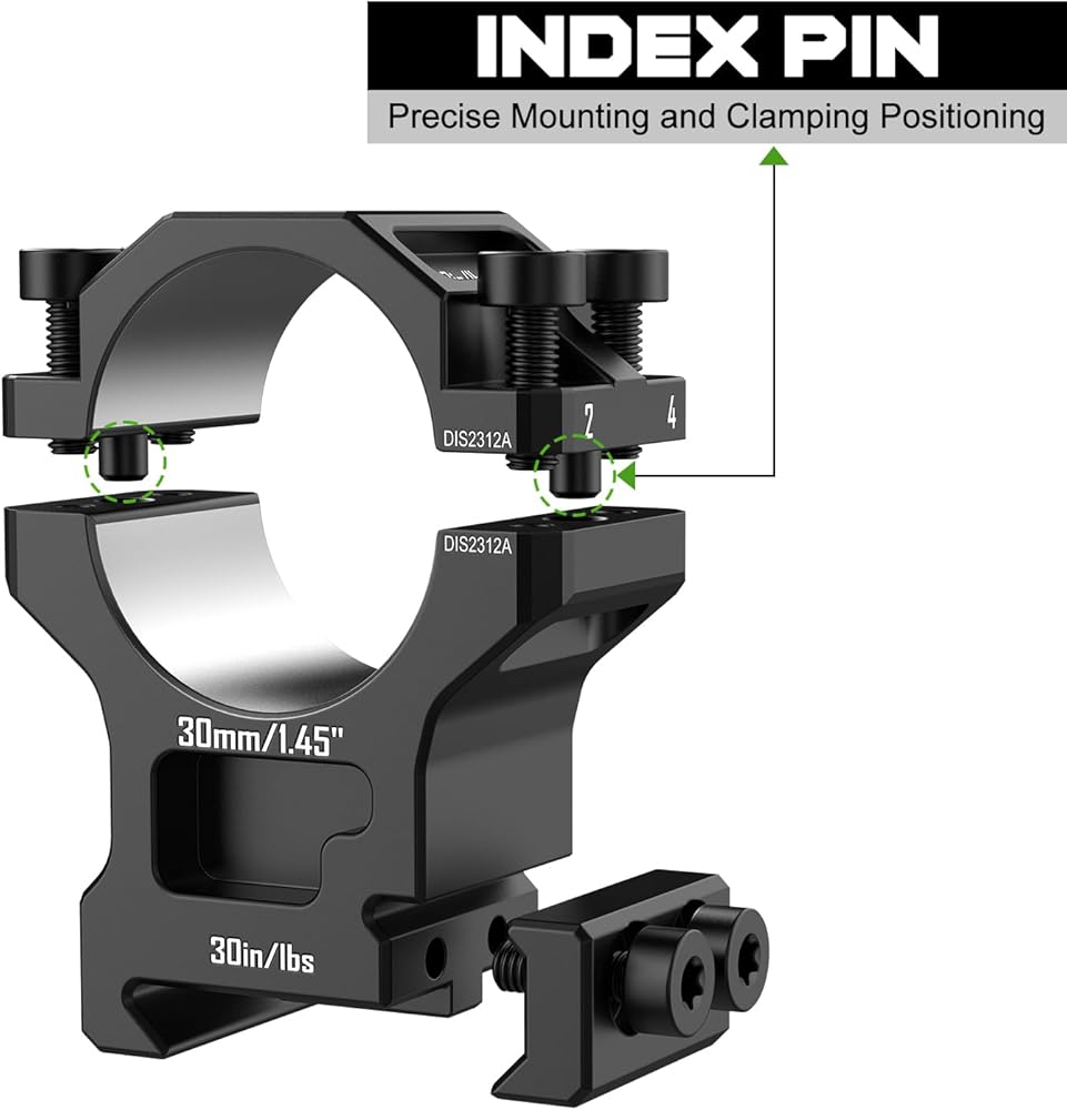 Index pin studs facilitate precise scope mounting and clamping, with four T-25 screws providing a secure lock