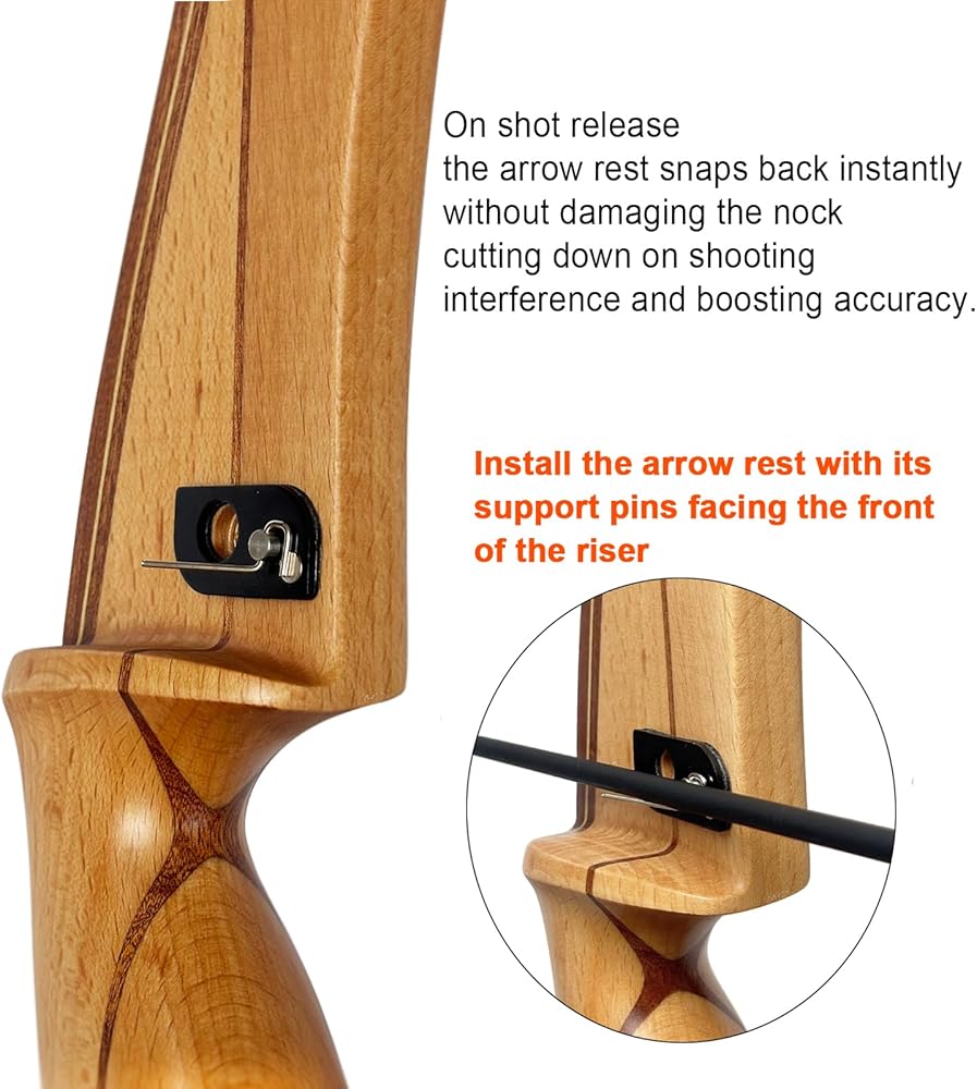 Wide Application: The Arrow rests fit for the Recurve Bow, triditional bow, Longbow right and left hand, can reduce the friction to protect the Arrow Vane.