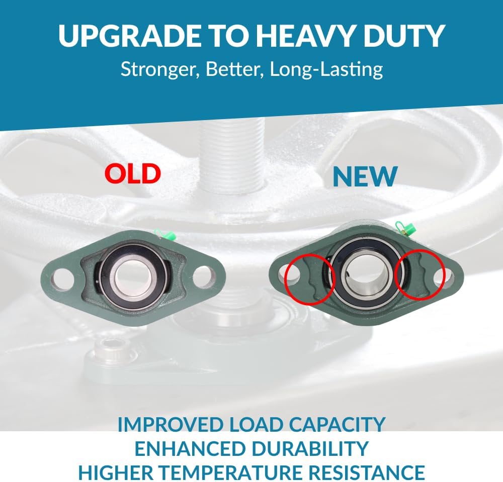• SOLID IRON CAST HOUSINGS - Each bearing features a solid cast iron housing, which provides a sturdy base to bearing, allowing it to stay in position.