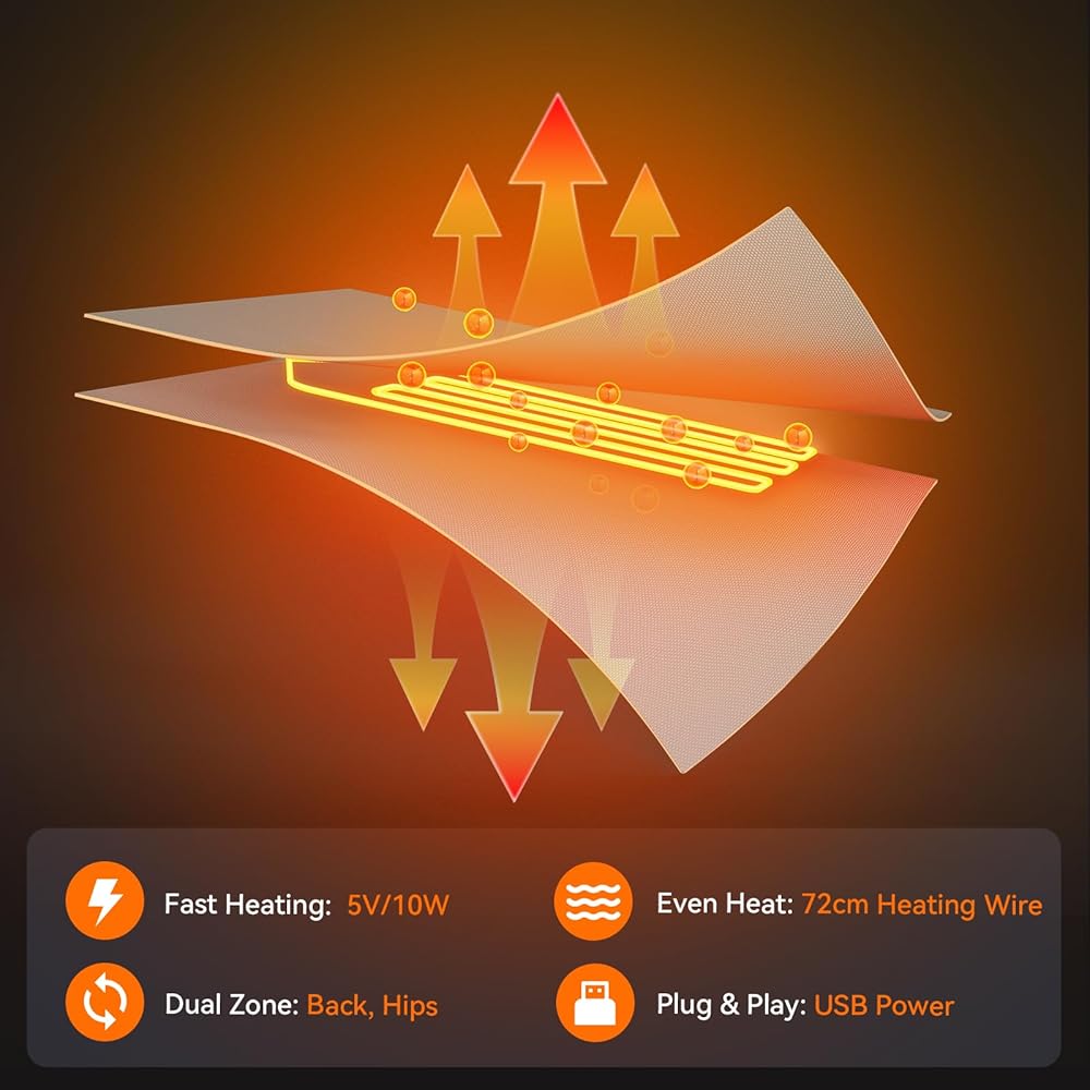 【Dual-Zone Heating】The heated camping chair features four heating zones and two independent heating control systems, allowing you to adjust the temperature of each seat independently, keeping you warm even in the coldest winter. The heated chair is USB-powered and compatible with power banks with a capacity of 10,000 mAh or higher (output: 5V/2A, batteries not included). Two power banks are required.